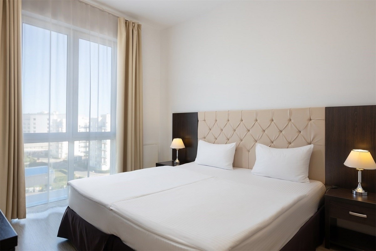 Три спальни с двуспальной (2 кровати объединенные топпером) или двумя раздельными кроватями